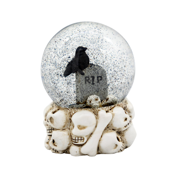 Koule z čirého skla vytváří efekt sněhové koule a po otočení se uvnitř rozzáří halloweenská atmosféra.